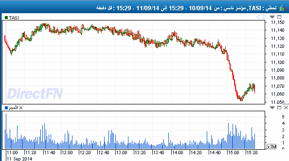 "تاسي" جلسته اليوم متراجعا وبنسبة (0.57%) خاسرا 62.87 نقطة، ليغلق عند