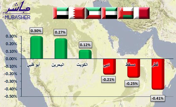 2.06% كما تراجع مؤشر سوق دبي بنسبة 0.86% وكان المؤشر العُماني أقلهم