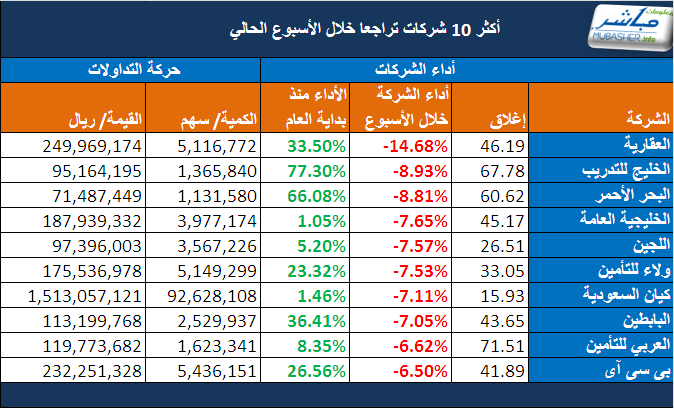 ومع تراجع المؤشر هذا الأسبوع شهد السوق