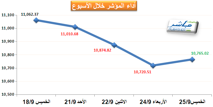 المؤشر أسبوعه دون مستوى الـ 11 ألف منذ 4 أسابيع.