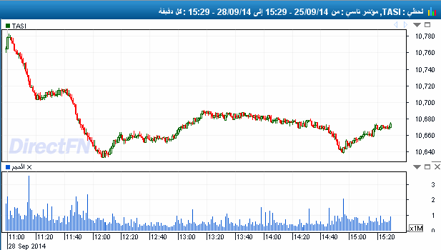 خاسرا 90.86 نقطة، ليغلق عند 10674.17 نقطة بينما كان قد أغلق في جلسة